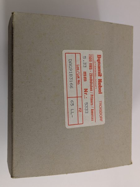 Angeboten werden 750 RWS-Zündhütchen 5333 Large Rifle Magnum. Die Zündhütchen habe ich schon länger, aber ich brauche heute keine Magnum-Zünder mehr. Sie waren immer trocken gelagert.