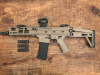Die erwähnten minimalen Gebrauchspuren (leichter Cerakote Abrieb) resultieren lediglich aus der Anbringung der M-Lok Schienen und Auf- und Abmontieren der Aimpoint Micro QD Montage.