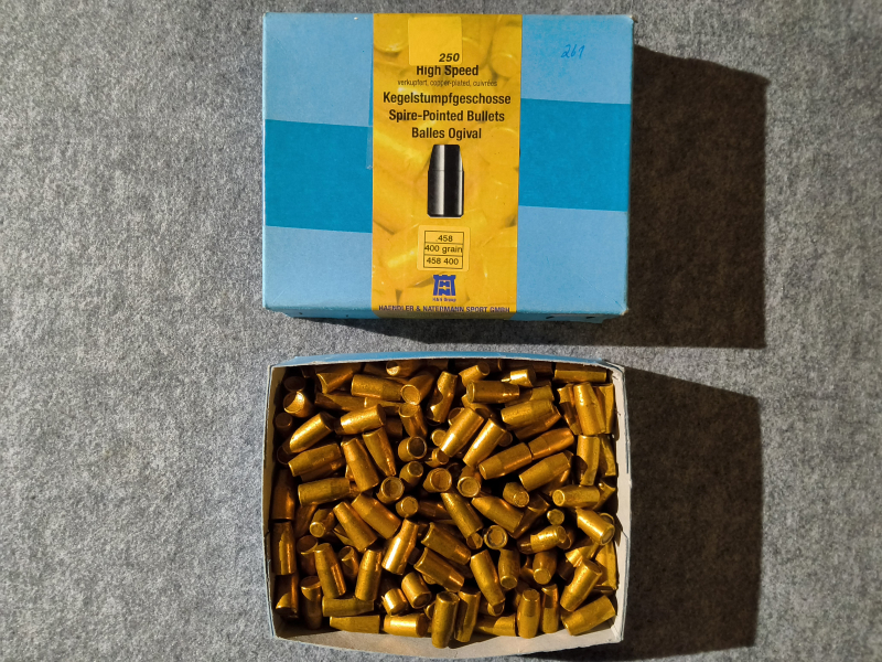 Hallo zusammen, verkaufe hier H u. N High Speed Kugelstumpfgeschosse .458 400grain. Anzahl 250 Stück, Zustand siehe Bilder. Gemäß neuem EU-Recht erfolgt dieser Privatverkauf unter Ausschluss jeglicher Gewährleistung, Garantie, Umtausch und Rücknahme. Bilder sind Bestandteil der Beschreibung und damit der Auktion.
