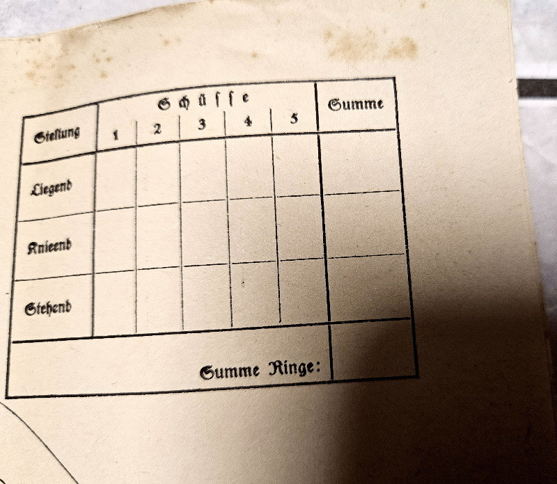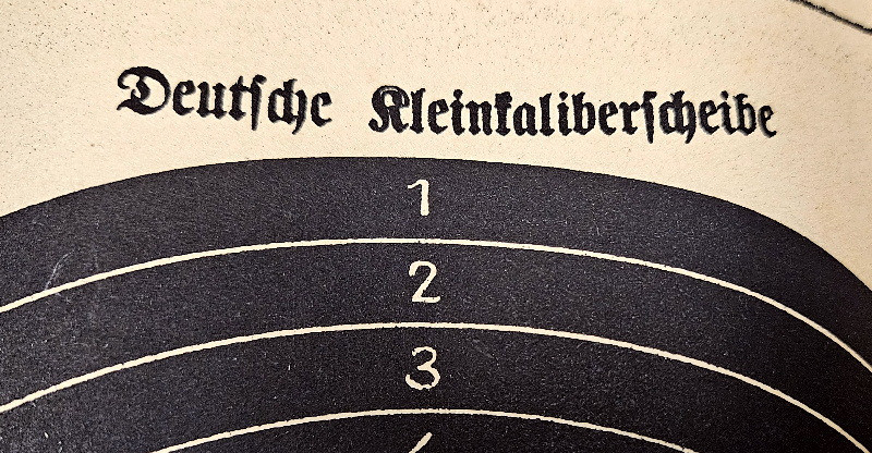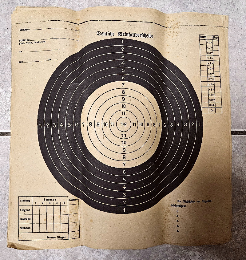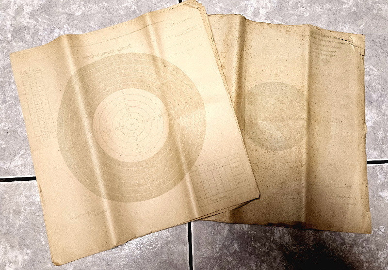 Bei den 2 Zielschreiben handelt es sich wie schon erwähnt um 2 verschieden Ausführungen. Einmal für die Jugend (so auch beschriftet) die seinerzeit oftmals mit Luftdruck Gewehren auf diese Zielscheiben feuerten. Die 2. Ausführung stammt von der Wehrmacht und sind Zielscheiben um mit dem K98 oder mit Kleinkalibern (um teure Munition zu sparen) darauf zu feuern.