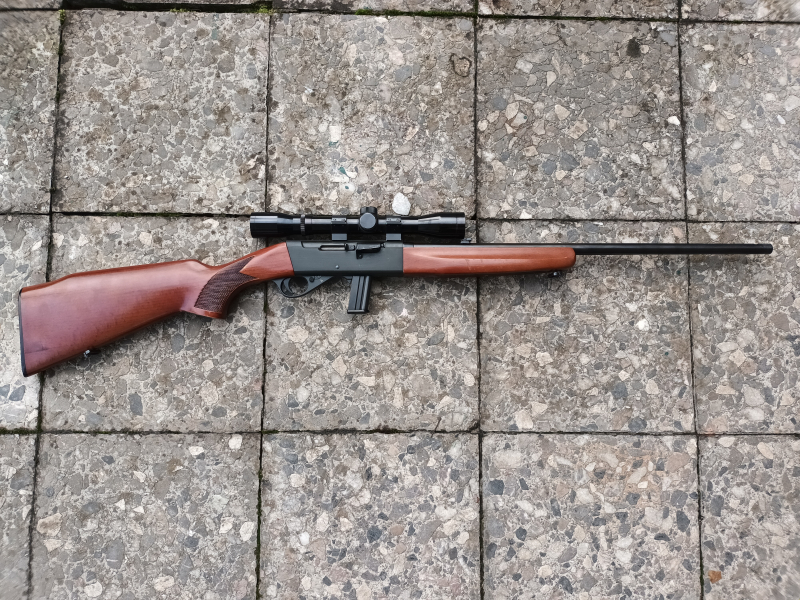 Sie können hier eine Selbstladebüchse des Modells 520 von Anschütz im Kaliber .22lr ersteigern. Die Waffe ist in einem gebrauchten, aber ordentlichen Zustand. Die Waffe ist mit einem Magazin ausgestattet, das zehn Patronen fasst, und verfügt über ein 4x32-Zielfernrohr der Marke OHTA.Dank des montierten Hülsendeflektors fallen die ausgeworfenen Patronenhülsen beim Schießstandbesuch nicht zum Nachbarn. Das Korn der offenen Visierung ist nicht vorhanden. Trotzdem wurde die Waffe vom Vorbesitzer mehrfach erfolgreich bei der Jagd eingesetzt.