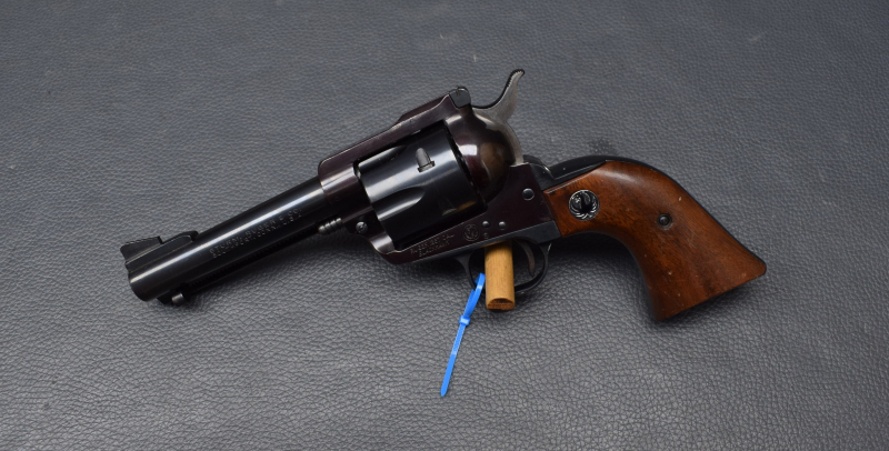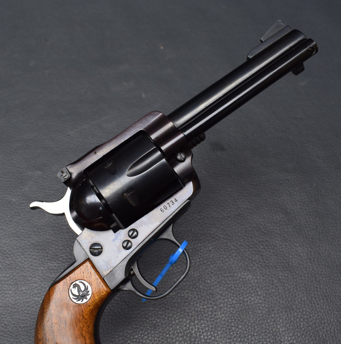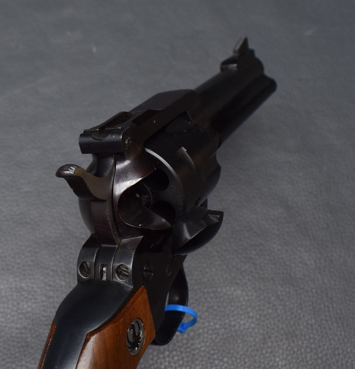 Holzgriffschalen mit Ruger Logo. Lauf und Trommelbohrungen sehr gut, Oberfläche 97%