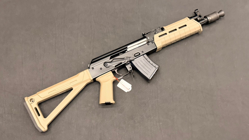 Halbautomatische Büchse im Kaliber 7,62×39, gefertigt bei WBP Rogów (Polen). Kompakte Bauform mit 259 mm Lauflänge. Ausgestattet mit sandfarbener Magpul-Schäftung (Schaft, Griff, Handschutz). Mündungsbremse auf AK-Standardgewinde.