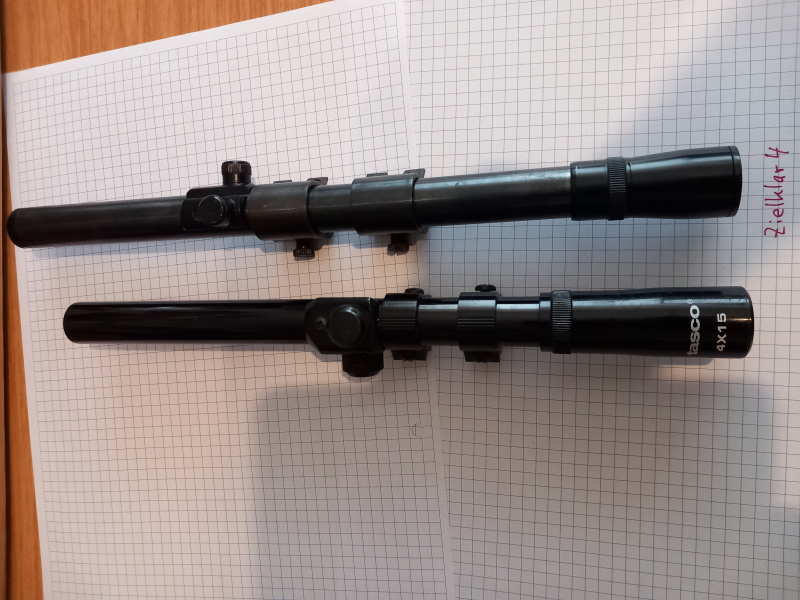Aus Nachlass biete ich 2 Zielfernrohre an( Tasco 4x15 aus Plastik und 1 Zielklar 4 aus Metall ) an.