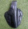 kleineres schwarzes Leder Holster für Pistolen von AKAH mit altersbedingten Gebrauchsspuren.