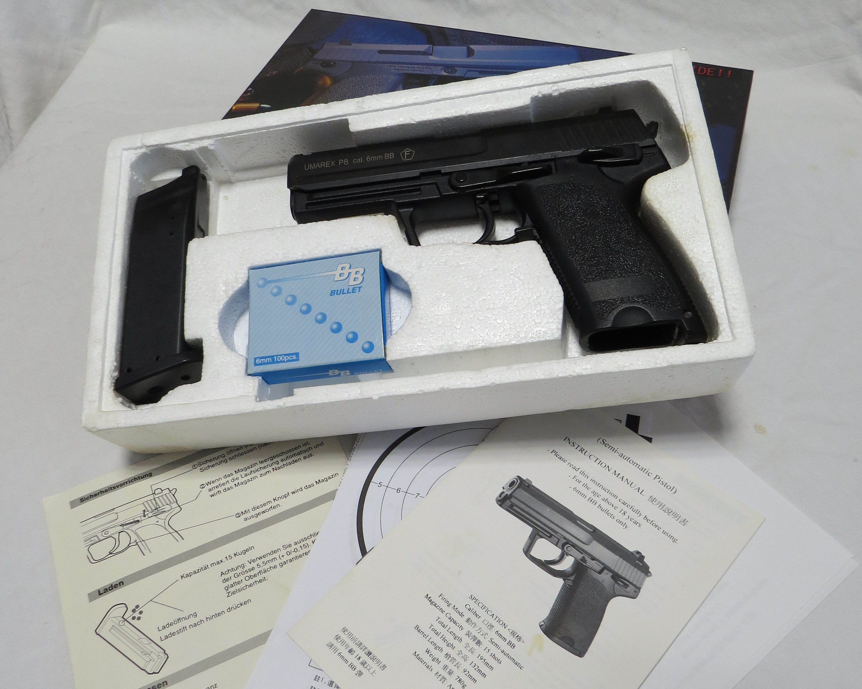 Diese Umarex Pistole P8 cal. 6mm BB, Air Gun, Made in Taiwan .Hier in OVP und nicht genuzt.Wie siehe hier Fotos.