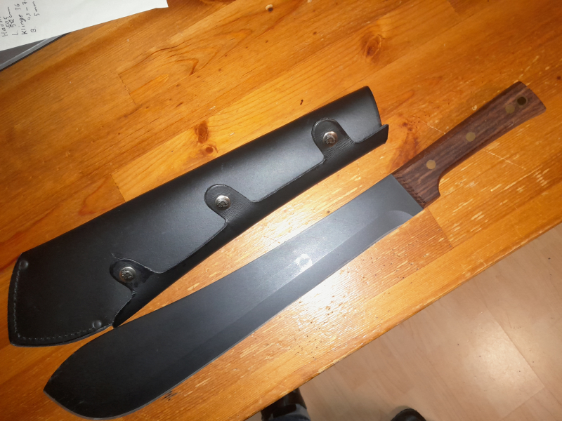 Schönes großes Haumesser mit Lederscheide und Holzgriff (Palisander)