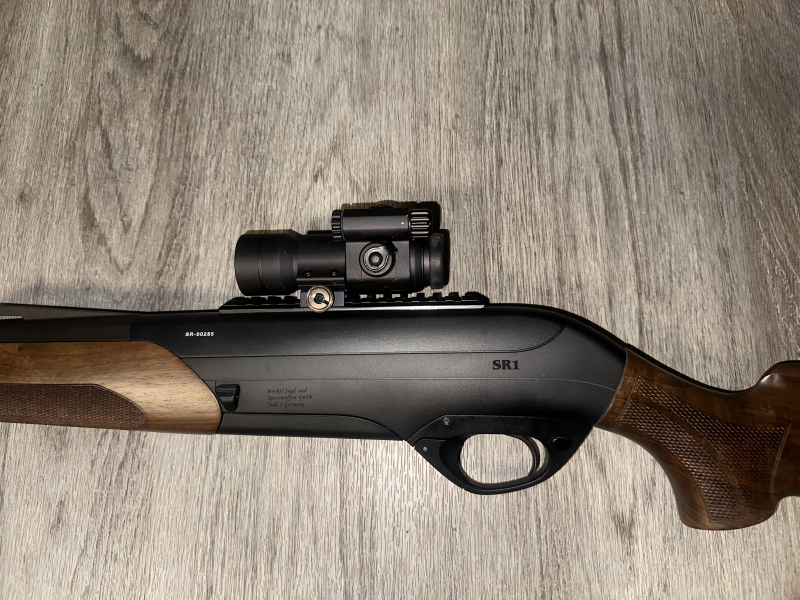 Ich verkaufe eine geerbte Merkel SR1 Standard Nussbaumholz im Kaliber 30.06. auf der Waffe ist eine Aimpoint C3 4MOA montiert.