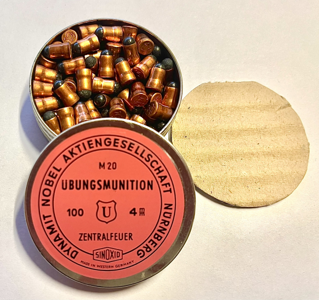 Zur Auktion kommen 10 Dosen 4mm M20 des Herstellers Dynamit Nobel. 9 Dosen befinden sich noch in der Originalverpackung des Herstellers mit dem Originalstempel 1820 65LH. Eine Dose ist geöffnet. Somit ein Sammlerstück und sehr selten. Erwerbsberechtigung erforderlich! Bilder sind Teil der Beschreibung. Dies ist eine Privatauktion. Daher sind Garantie, Rücknahme, Umtausch, etc. ausgeschlossen. Nach Geldeingang wird die Ware verschickt. Viel Spaß beim Bieten.