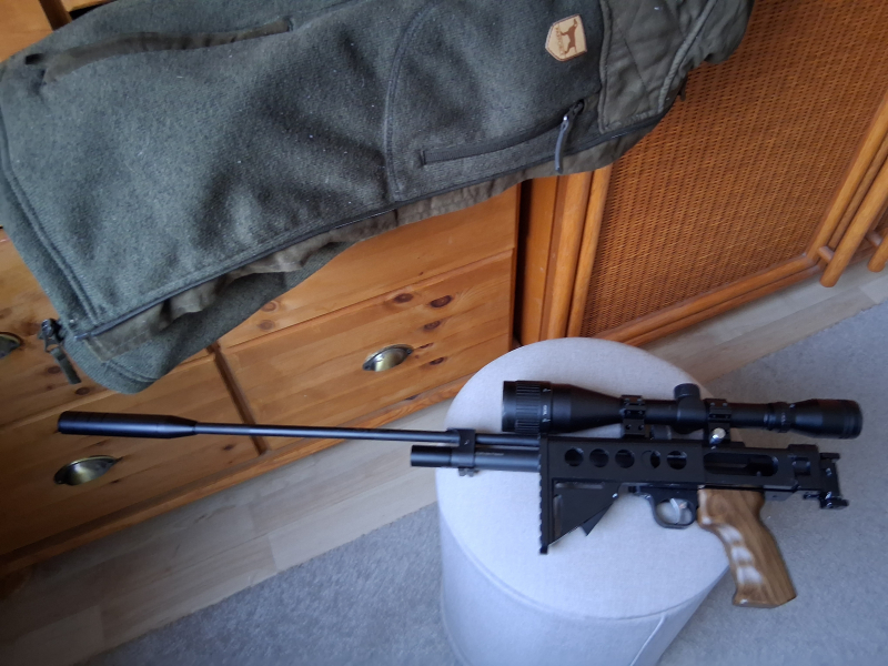 Hier noch etwas aus einem Einkauf. -- Am 10. d.M. werde ich 76, Sohnemann und Enkel / Uurenkel wollen keine Waffen. -- So geht nun doch alles in den Verkauf in den nähsten Wochen. +++ DIANA mit Aussenumbau und WALTHER ZF 6x42 mit verstellbarer Weite vorn. +++ Anschlagschafft zum umknicken. +++ Originalschalldämpfer. +++ Innenlauf Stahl gezogen, Aussenlauf ALU. +++ 2 x 7 Schusstrommel 5,5mm (.22), Einzelschusseinlage. Schutzschraube für Laufgewinde. Lauf ist von Barra für die Winchester 1866 gedacht, ist hier verbaut. *(Die dazu gehörenden 10 Hülsen in 5,5mm bietet ich auch noch an). +++ Der Griff ist aus Holz (fühlt sich gut an). Rest ALU und Stahl. +++ Lt. Verkäufer erlischt keine Garantie, falls vorhanden. +++ Kein Innenumbauten. Regulator vorhanden. Im Internet kann man nachlesen wie der eventuell modiziefiert werden kann. +++ Lege ein paar Dias bei. +++ Rest siehe Foto. +++ Als Privatverkäuferin biete ich keine Garantie oder eine Rücknahme. s. --mygun-- . Versand generell per DHL mit Info der Sendungs-ID. +++ Kein Auslandversand. +++ Kann gern abgeholt werden. +++ Frei ab 18j.