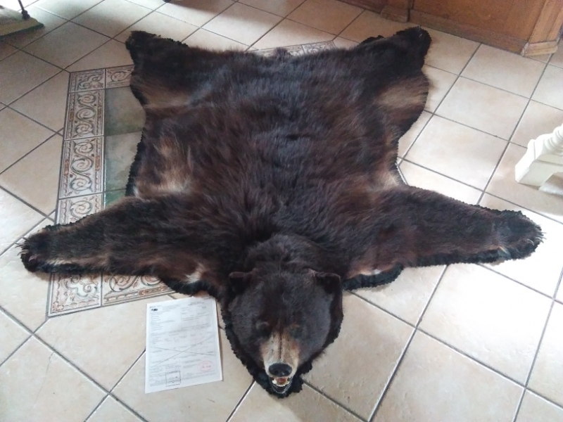 Sehr schönes Bärenfell mit Kopf und Krallen. Die Breite von der linken bis zur rechten Tatze beträgt 180 cm.