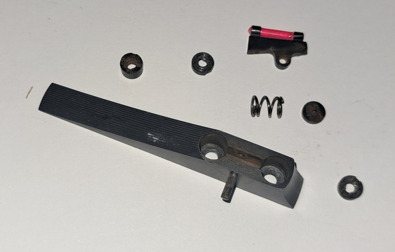 Sie bieten hier auf einen Kornhalter mit Lichtsammlerkorn "Rot" für Steyr Mannlicher aus Stahl. In diesem speziellen Fall handelte es sich um eine .308 Büchse. Lochabstand der beiden Montagebohrungen 16mm. Unterseite des Halters ausgekehlt für Läufe mit ca. 15,5mm Außendurchmesser an der Mündung. Korn ist in der Höhe verstellbar. Funktion ist nur gegeben wenn mit Stehbolzen wie bei Steyr Mannlicher montiert. Käufer aus dem Ausland bitte vorher Versandkosten in Erfahrung bringen. Keine Garantie, Rücknahme, Gewährleistung da Privatverkauf.