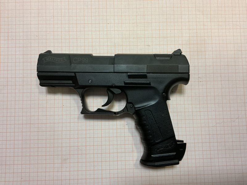 Ich biete diese Luftdruckpistole, Walther CP99 cal.4,5 mm, zum Verkauf an. Die Pistole stammt aus meiner Sammlung und wurde von mir nur zum Test ca. 5x geschossen. Der Test verlief unauffällig. Sie lässt sich Spannen und Schiessen. Das Zubehör und den Zustand entnehmen Sie bitte den Bildern.