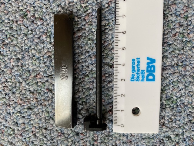Ich biete hier eine originale Deckplatte und originale Laufhaltestange für die Pistole MAUSER Mod. 1910, Kal. 6,35 mm an. Ob die Teile auch bei den Modellen 1914/34 passen, kann ich leider nicht sagen? Beide Teile sind ca. 7,5 cm lang und für das Alter im Bestzustand. Die Deckplatte ist zudem mit dem MAUSER-Logo (liegende Tonne) gestempelt. Privatverkauf ohne Garantie, Gewährleistung oder Rückgaberecht. Der Versand erfolgt mit versichertem Paket und Sendungsnummer. Die Versandkostenpauschale für Deutschland beträgt 10,- Euro und für EU-Länder 22,- Euro.