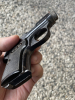 Walther Pistole Mod. 5, 1.Variante, das sogenannte Übergangsmodell vom Mod.2 zu 5 im Seriennummernbereich 63000 bis 83500 nur mit Korn in der Visierlinie. Kursive Beschriftung der linken Schlittenseite: WALTHER`S PATENT CAL.6,35 und Walther Schleife Rechte Schlittenseite: WAFFENFABRIK WALTHER ZELLA-MEHLIS und Beschuss Kroneüber N.Rechte Griffstückseite: Beschuss Krone über N.Linke Griffstückseite zwischen Griffschale und Abzugsbügel die S.Nr. 81653 .Schwarze Kunststoffgriffschalen mit Fischhaut und mit CW im Oval. Waffe mit zeitgenössischer originaler Brünierung diese zu 95% erhalten und im Gesamten noch recht gut erhalten. Seltene Ausführung einer Variante der Pistole Walther Mod. 2 von welcher im Gesamten nur 20500 Stück hergestellt wurden und dies in noch sehr schönem originalen Gesamtzustand.
