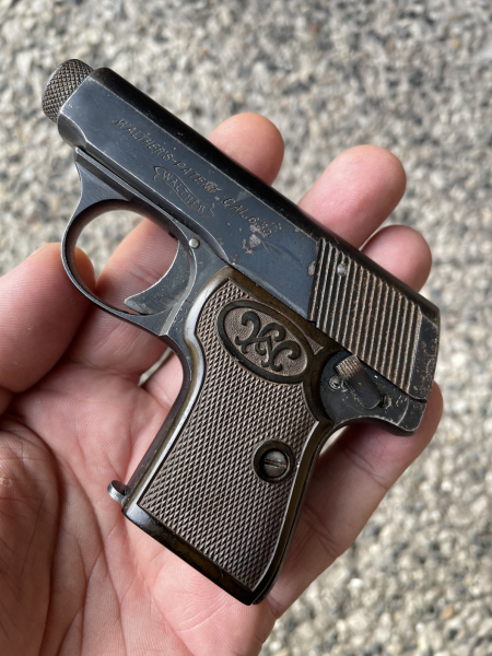 Pistole Walther Mod. 5 Herst.: Fa. Carl Walther Zella -Mehlis S.Nr.: 81653 Kal.: 6,35mm Brw.