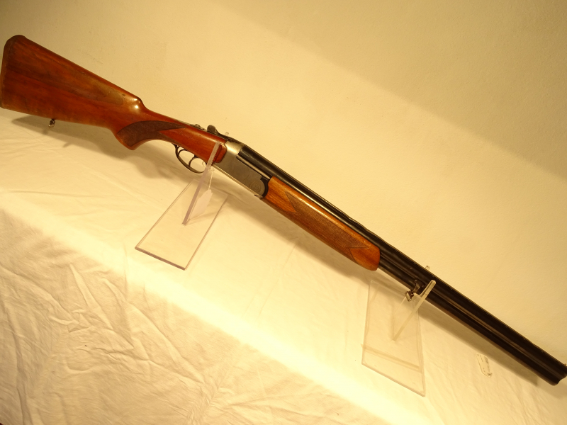 Biete hier eine Bockflinte Rottweil 65 Doppelabzug, Kal. 12/70, mit einer Lauflänge von 70cm und einer Schaftlänge von 375mm. Der Schaft hat eine Holzabschlußkappe.