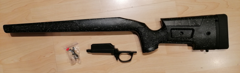 Verkaufe neuwertigen Schaft (Remington 700 SA Footprint) aus meiner Premier, den ich nur einmal auf dem Stand schoss und dann gegen ein MDT Chassis wechselte. Einziger "Makel" ist ein kleines zusätzliches Loch im Vorderschaft (Bild), das ich zur Montage der ARCA Rail benötigte. Die beiden Riemenaufnahmen und die Schaftschrauben liegen bei. Es handelt sich um einen Privatverkauf und ich schließe jedwede Garantie, Gewährleistung, Rückgabe und/oder Preisreduzierung aus. Die Zahlung muss innerhalb von 5 Werktagen nach Auktionsende erfolgt sein (paypal nur als F+F möglich!). Versandkosten gelten für D ohne Inseln, andere Destinationen bitte anfragen. Bitte stellen Sie Ihre Fragen, bevor Sie ein Gebot abgeben, mit Ihrem Gebot erkennen Sie die vorgenannten Bedingungen rechtsverbindlich an!