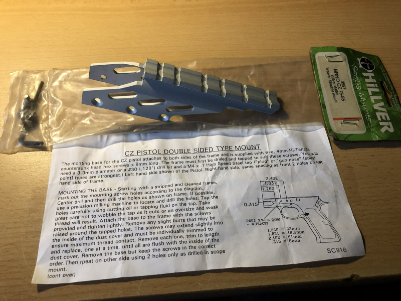 CZ 75 Weaver-Montage für Rotpunktvisier (Red Dot) von HILLVER. Schienenbreite 21 mm. Montage am Dustcover. Unbenutzt im Originalzustand und Verpackung.