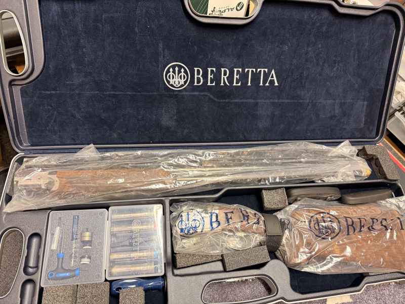 Im Lieferumfang enthalten sind ein Berettakoffer, 5 Wechselchokes / Ballancer Gewiche , eine zweite Schaftkappe und ein kleines Zubehörset.
