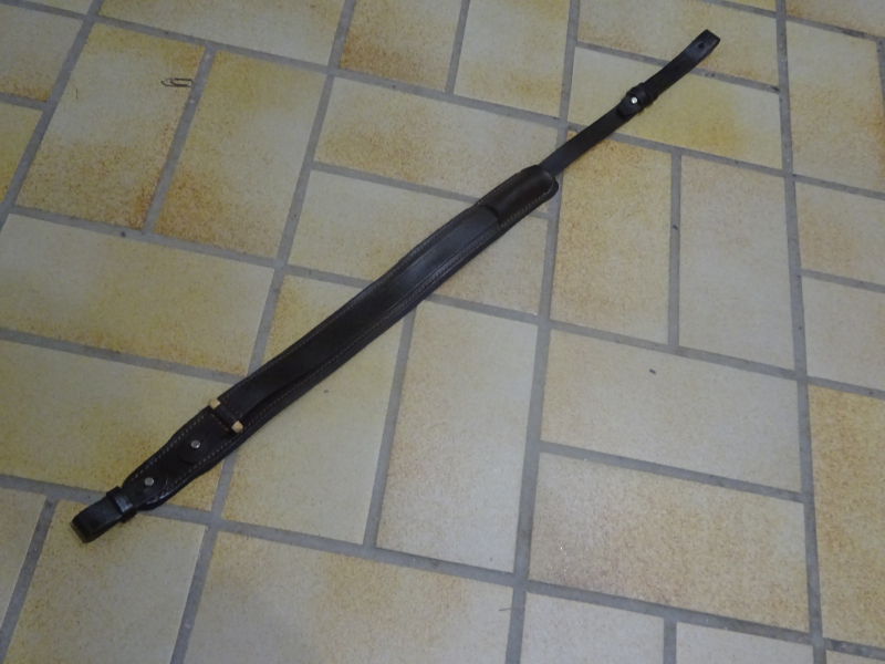 fast neuwertiger Gewehrriemen, hochwertig verarbeitet aus feinem Leder, verlängerbar von 80cm auf ca. 105 cm, mit Holzapplikation, Innenseite rutschfest ausgestattet, siehe Foto und mein egun