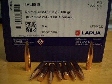 100 St.Lapua Geschosse im Kal.6,5mm (.264Dia)