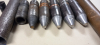 Six projectiles allemands de la Seconde Guerre mondiale inertes et présents en modèles différents.
