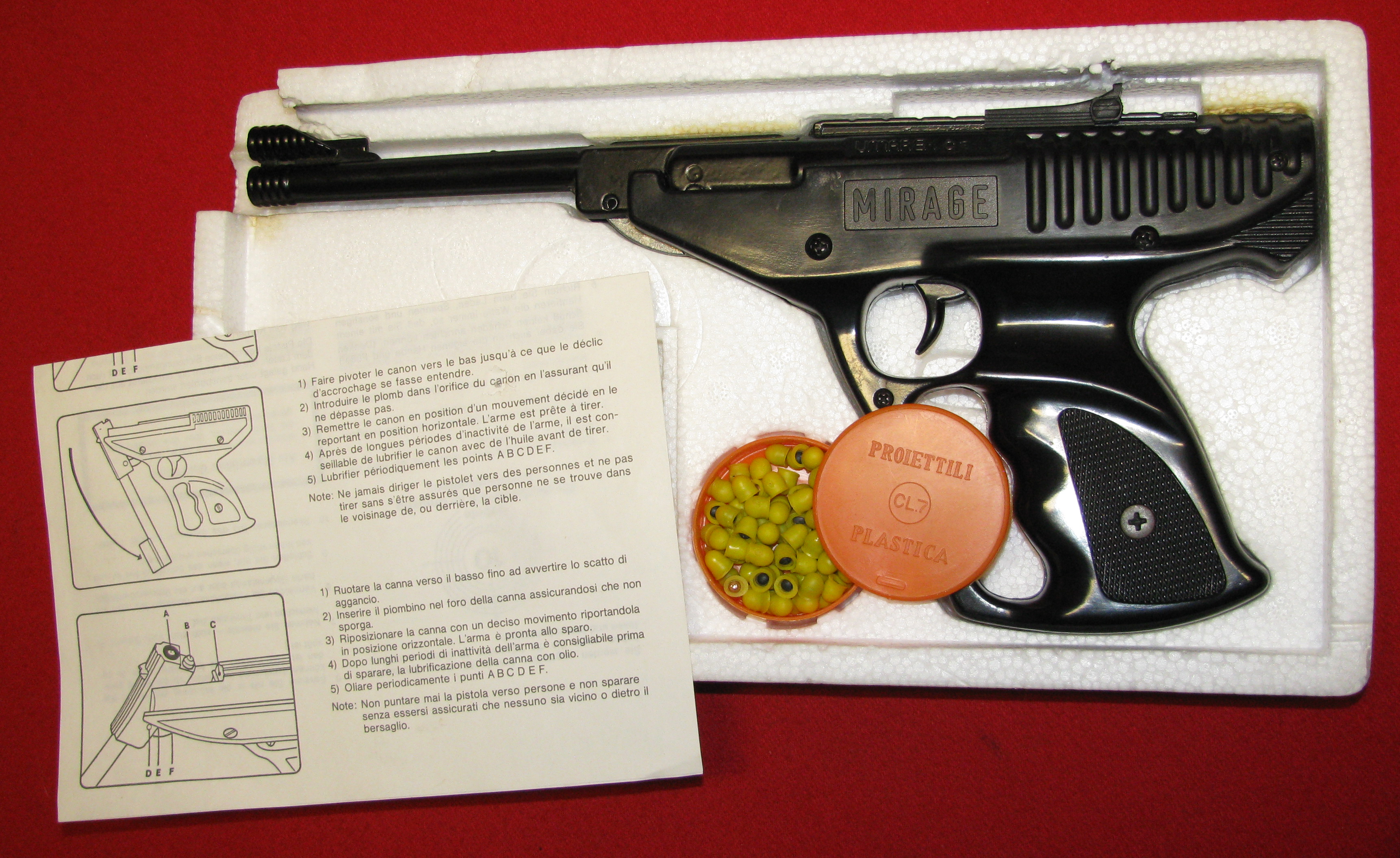 Diese Luftpistole verschießt 7mm Gummikapseln mit sehr geringer Energie (Spielzeugpistole)