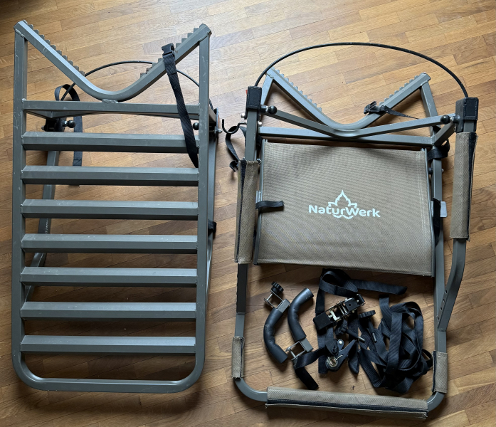 Leichter Transport, Einfacher Aufbau und sicherer Sitz am Baum.