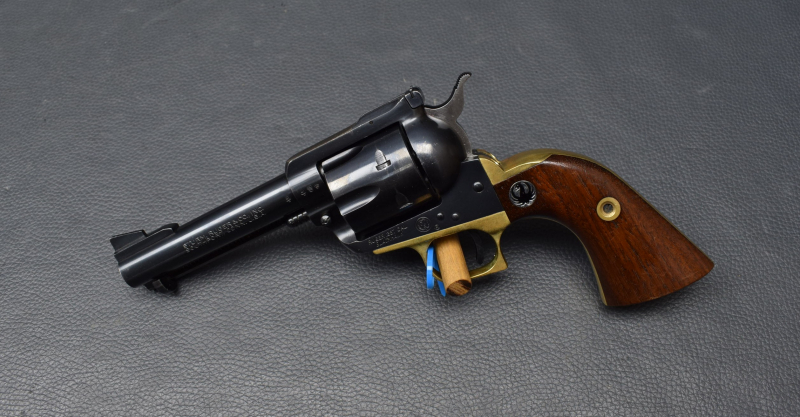 SA-Abzugsystem, Messinggriffstück, 6-Schuß Trommel, unter dem Lauf liegender Ausstosser,