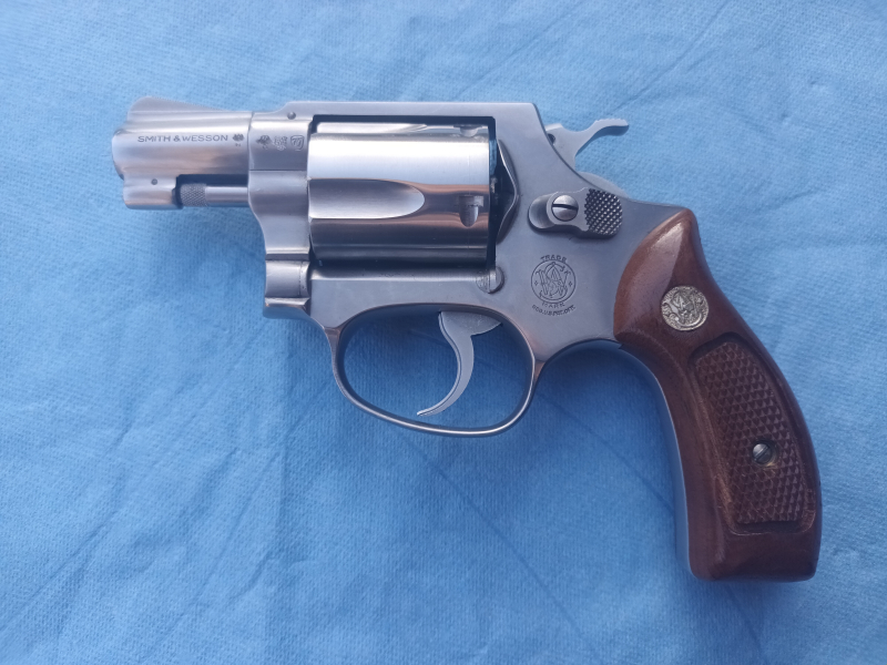 Hier haben Sie die Möglichkeit, einen Smith and Wesson Modell 60 Revolver im Kaliber .38 Spezial zu ersteigern. Die Waffe ist für ihr Alter in einem gepflegten Zustand. Die Waffe ist aus Stainless Steel, hat eine Lauflänge von 2 Zoll (ca. 51 mm) und Walnussgriffschalen.