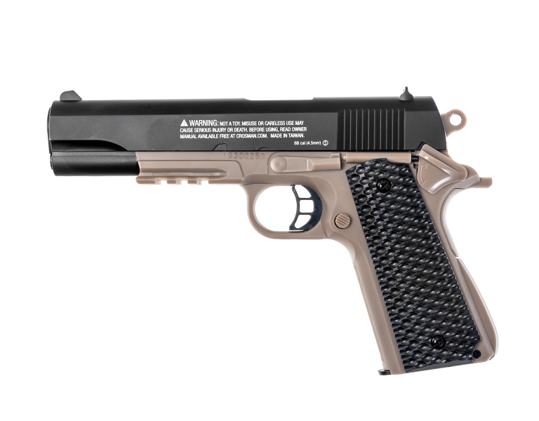 Die Crosman S1911 Classic Luftpistole kommt im Kaliber 4,5 mm und kann Stahlrundkugeln verschießen. Sie eignet sich hervorragend für den Freizeitbereich. Egal ob mit Freunden, Vater und Sohn oder alleine. Die Crosman S1911 Classic verspricht Schießspaß für kleines Geld !