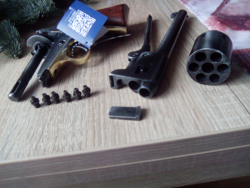 Noch etwas aus meinem Fundus. +++ 6 Schuss DEKO-Revolver (Südstaatenausführung lt. Verkäufer) von Kolser. +++ Kann mit Zündhütchen geschossen werden. +++ Anbei sind 6 Stahleinschraub Zündhütchenhalter mit Gewinde. Siehe Foto. +++ Falls man die Trommel umbauen will. +++ Funktioniert! +++ Kann komplett zerlegt werden, Schraube unten und 2 neben Schlaghahn. Wie das Original., sagt man. +++ Rest bitte im Internet nachlesen und die Fotos des Angebotes beachten. +++ Als Privatverkäuferin biete ich keine Garanie oder eine Rücknahme. Siehe auch -- mygun --. +++ Versand generell per DHL mit Info der Sendugs-ID. Kein Versand auf eine Insel. Ins EU-Ausland, ausser UK/CH, Versandkosten €19. +++ Frei ab 18j. +++ Kann auch gern abgeholt werden.