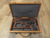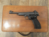 Sie bieten auf eine Halbautom. Pistole der Marke Margolin Kal. 22lr. 6 Zoll , mit Schlittenhaltehebel, Zustand ist gut, siehe Bilder. 1 Magazin und Original Holzwaffenkoffer,