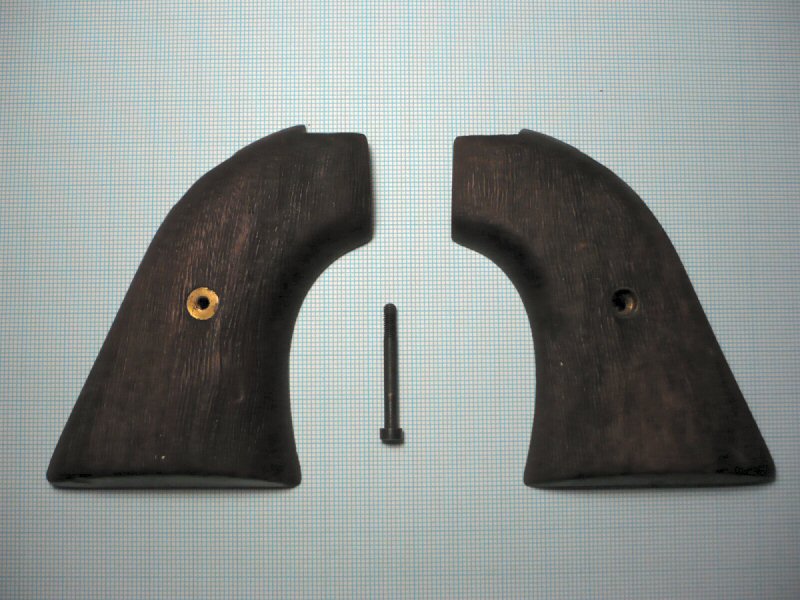 Griffschalen für einen Westenrevolver (Typ unbekannt). Holz mit Befestigungsschraube. Guter Zustand mit einigen Gebrauchsspuren.