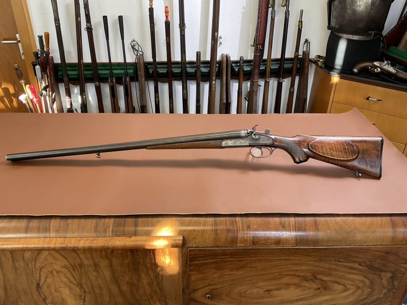 Zum Verkauf steht eine klassische Querflinte aus Ferlach , beschossen 1951 (Beschussamt Ferlach). Die Flinte befindet sich in gebrauchtem Zustand, die Schlösser sind technisch tadellos. Der Verschluss hat minimales Spiel. Läufe mit Vollchoke.