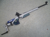 Der Alu-Schaft mit Gebrauchsspuren an den Kanten und einen Ausbruch an der UIT-Schiene (Detailbild).