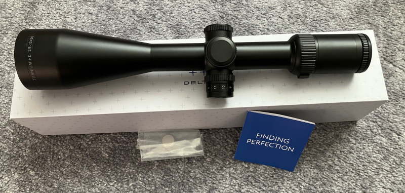 …biete hier aufgrund von Überbestand ein hochwertiges Zielfernrohr der Marke Delta Optical Titanium HD „Made in Japan“ zur Auktion. Das Glas wurde montiert und benutzt, aber nicht jagdlich geführt. Man kann am Mittelrohr bei ganz genauem Hinschauen leicht die Abdrücke der Montage erkennen, aber dies fällt wirklich nur auf, wenn man mit der Lupe schaut. Am Verschlussdeckel der Batterie sind ebenfalls ganz leichte Spuren am Lack zu erkennen, ansonsten ist das Glas in absolutem Top-Zustand. Der Mittelrohrdurchmesser beträgt 30mm. Das Glas ist perfekt für wenig Licht. 6x Vergrößerungsbereich. Ermöglicht eine zuverlässige Fernpräzision, ohne auf ein weites Sichtfeld mit geringer Vergrößerung zu verzichten. Hervorragende kontrastreiche HD-Optik. Beeindruckende große vorhandene Pupille ermöglicht eine schnelle Zielerfassung und bietet jederzeit ein stabiles Sichtbild. Parallaxen-Einstellrad neben dem beleuchteten Absehenhelligkeitsregler. Türme: gekappt / Vergrößerung: 2.5x – 15x / Objektivdurchmesser: 56mm / Sehfeld @ 100m: 14.4m – 2.5m / Austrittspupillendurchmesser: 11.6 – 3.7mm / Augenabstand: 98 – 99mm / Wasserdichtigkeit: 0.3kg/cm2 / Position des Absehens: Zweite Bildebene (SFP) / Leuchtabsehen: Punkt / Pro Klick: 1/4 MOA / Höhenverstellung: 50 MOA / Seitenverstellung: 50 MOA / Paralaxe-Einstellung: 15 m – ∞ / Dioptrienreichweite: – / Mittelrohrdurchmesser: 30mm / Länge: 364mm / Gewicht: 780g / Batterie: CR2032. Die Bilder sind Bestandteil der Auktion und zeigen die Optik im Original. Dies ist ein Privatverkauf und ich schließe jegliche Sachmängelhaftung aus. Viel Spaß beim bieten…