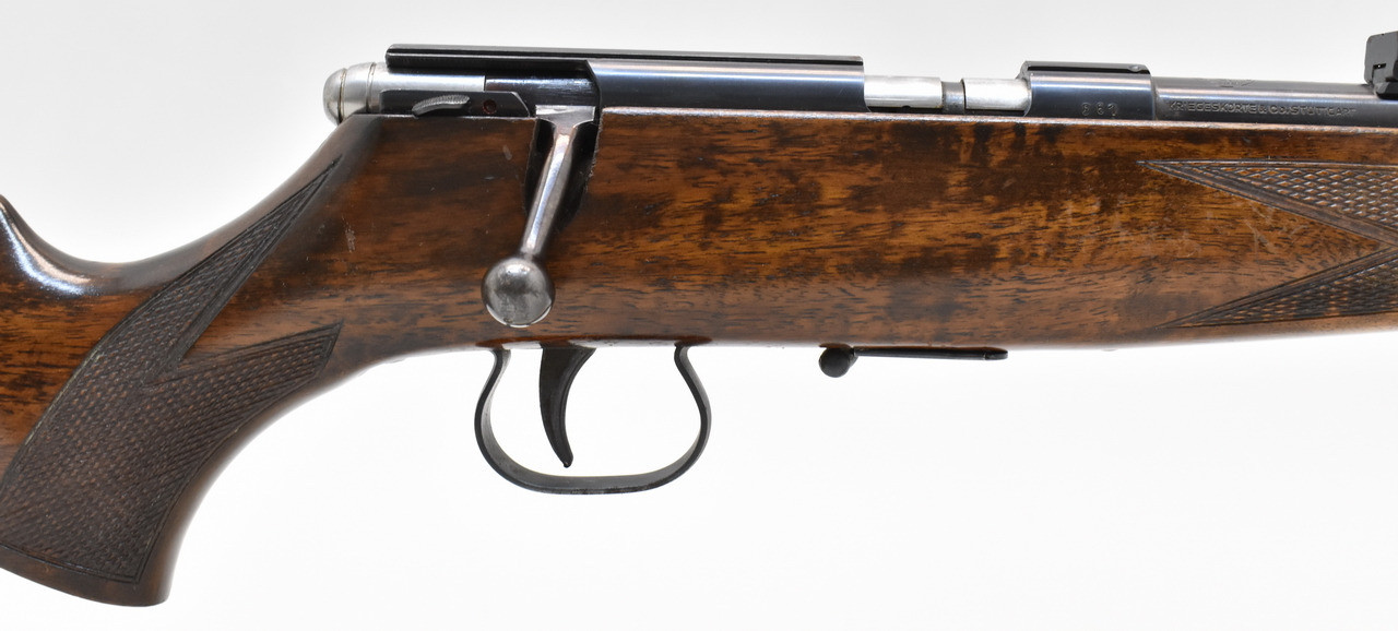 KK Repetierer von der Firma Kriegeskorte&Co., Stuttgart. 5-Schuss Magazin und Druckpunktabzug. Spiegelbanker Lauf, 35,5cm langer Schaft (gemessen Abzug bis Mitte Schaftkappe).