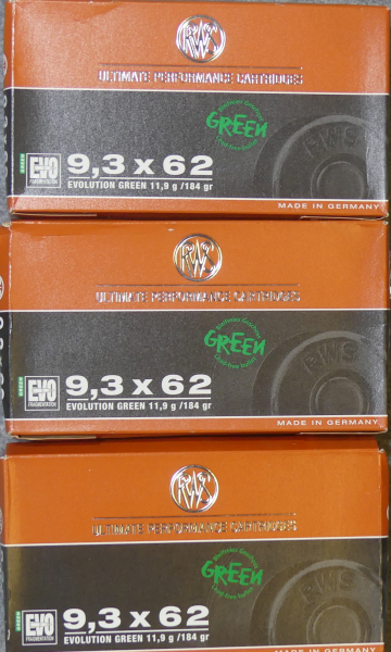60 Schuß RWS 9,3x62 EVO Green 11,9g / 184gr 2 verschieden Lose