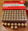 52x .38 Spl. HP Hülsen von Hirtenberger, ungewaschen, unentzündert in Einer Patronenschachtel. Plus 8x in .357 Mag.