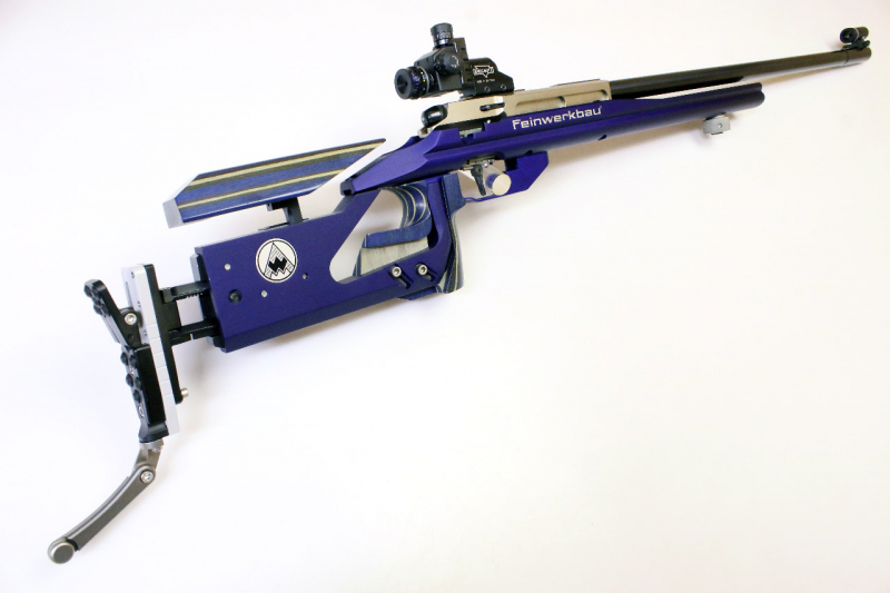- mehrfach justierbarer Feinwerkbau-Leichtmetall-Match-Linksschaft des Modell 2700 mit Schichtholzgriff & -backe (Schaftkappe inkl. Schulterstütze Neu), Schiene für Dreistellungskampf