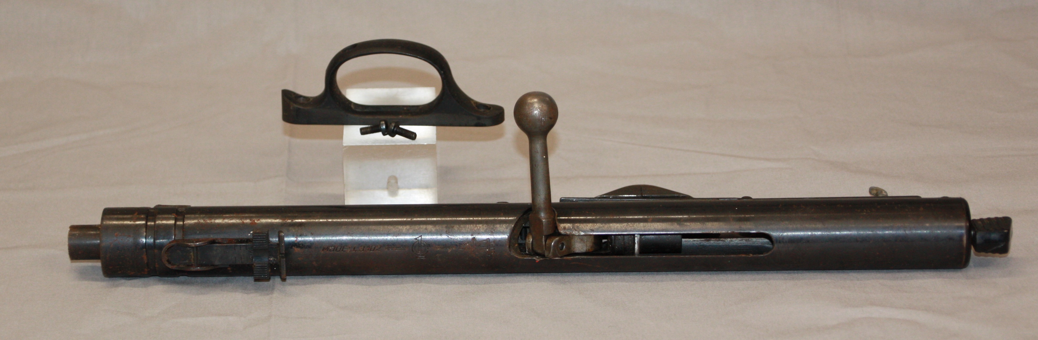 System ohne Lauf und Schaft + Abzugsbügel mit Schrauben. Alters- und Gebrauchsspuren, aber Gut.