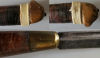 - Hirschlederscheide verziert mit Greifvogelfeder, wahrscheinlich Baumfalke, und wahrscheinlich