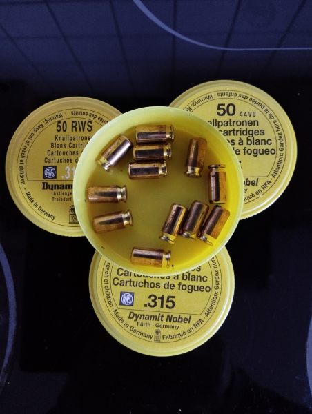Ich biete hier Knallpatronen im Kalieber .315 Knall an.Werden manchmal auch als 8mm kurz bezeichnet.Sie bieten auf das,was auf dem BIld zu sehen ist.Also Ca. 160 Patronen.Der Versand ist unversichert im Päckchen oder für 8,50€ als versichertes Paket.Bitte im Verwendungszweck angeben.