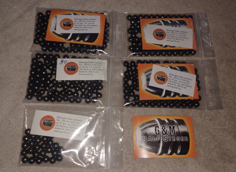 Verkaufe hier 420 Stück Vorderlader Rundkugeln von G&M Ralf Steger im Kaliber. 356(9,04 mm) Sehen Sie sich die Bilder an. Bei Bezahlung mit PayPal nur an Freunde oder Übernahme der Gebühren. Keine Garantie oder Rücknahme.