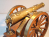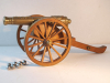 Wie die Schlösser und die Möbel der Epoche um 1750, so ist auch dieses Modell einer Feldkanone reich und opulent verziert. Diese Epoche - in Europa Barock genannt - geizte nicht mit zahlreichen Zierelementen und üppigster Ausstattung. So ist es auch bei unserem knapp 45 cm langen, meisterlich gefertigten Geschützmodell. Das 25 cm lange Kanonenrohr verfügt in der Nähe des Zündloches und im mündungsnahen Rohrbereich über schöne, reich zisilierte Schmuckelemente. Ebenso entspricht die Formgebung des ganzen Rohres den ästhetischen Ansprüchen dieser Zeit. Der im Cal. 13 mm offene Lauf führt sauber bis zum ca. 2,5 mm messenden Zündloch, was das schön patinierte Rohr beschussfähig macht. Mittels einer raffinierten „Richtmaschine“ wird das Rohr auf der massiven Buchenholzlafette höhenjustiert. Auch die ausgesprochen präzise und maßstabsgestreu erstellten Speichenräder sind aus Buchenvollholz gefertigt. Alle Beschlagwerke, die Radreifen und die Schildzapfenschlösser sind wie das Rohr aus Messing/Bronze hergestellt. Da das schöne Modell schwarpulverbeschussfähig ist, findet ein Verkauf nur an volljährige Personen statt.