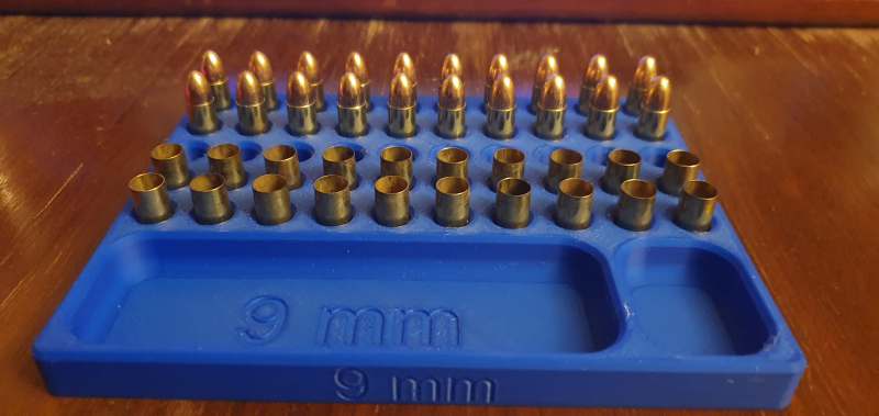 Ladebrett für 9 mm mit Fächer für Geschosse und Zündhütchen