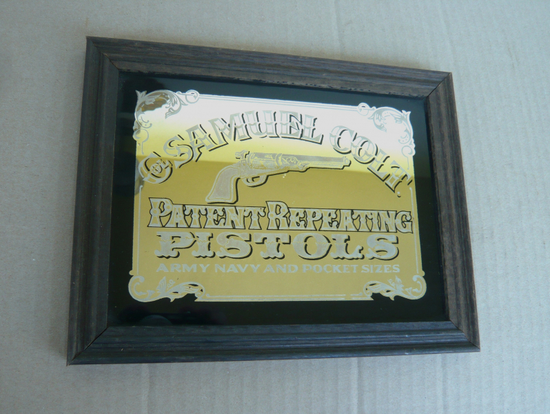 Biete eine ältere Replik eines Werbespiegels mit schönem Holzrahmen an. Größe 18 x 23 cm. "Samuel Colt Patent Repeating Pistols! Sehr guter Zustand. Zahlung bitte per Vorkasse Überweisung oder per PayPal Friends, gerne auch Barzahlung bei Abholung 61276 Weilrod. Foreign bidders ask for conditions!