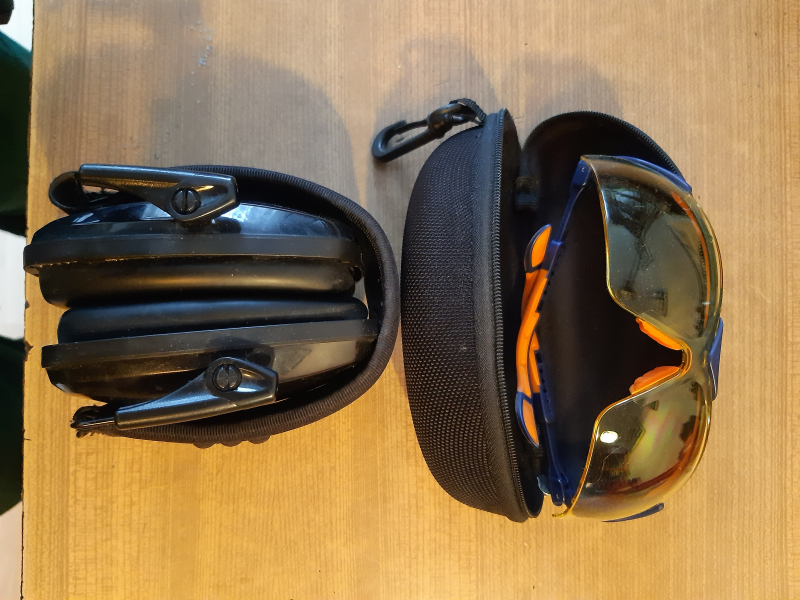 Zusammenklappbarer Gehörschutz und Brille